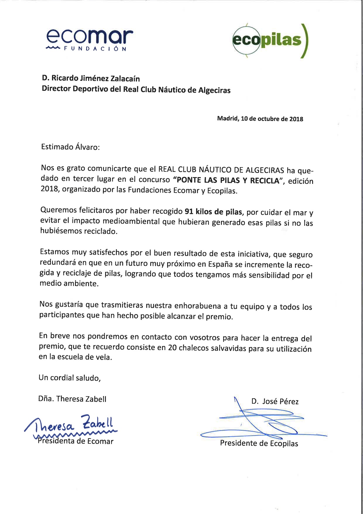 La Fundación Ecomar en colaboración con Ecopilas pone en marcha el concurso “Ponte las Pilas y Recicla”, durante los meses de Julio y Agosto, entre todos los clubes náuticos, escuelas de vela, marinas y centros que forman parte del Programa Grímpola Ecomar.